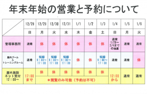 - 熊谷運動公園 年末年始の営業時間について ※一部内容を変更いたしました