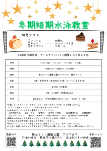 小学校の水泳授業を屋内プール(アクアピア)で実施する為、令和7年6月から令和8年3月の間、休館日が下記の通り
