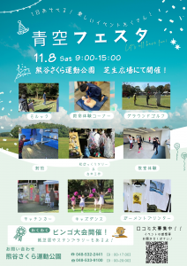 11月8日(土)に熊谷運動公園 芝生広場にて青空フェスタを開催します。